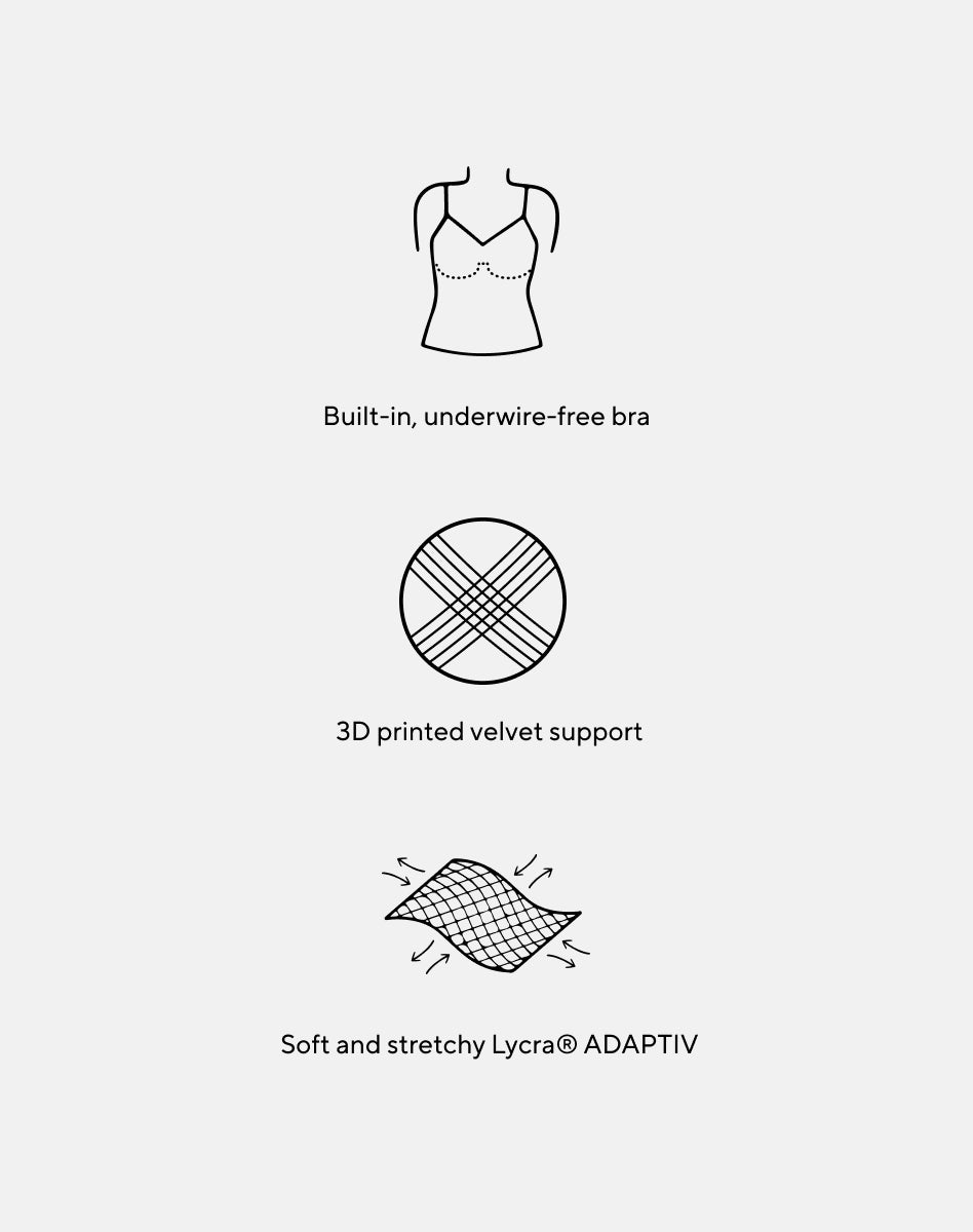 This shaping cami features flat. stretch silicone coated in soft velvetine flocking for flexible support. A built-in bra lifts without underwire. and adjustable straps let you customize your fit. Wear as an undergarment or an everyday top.